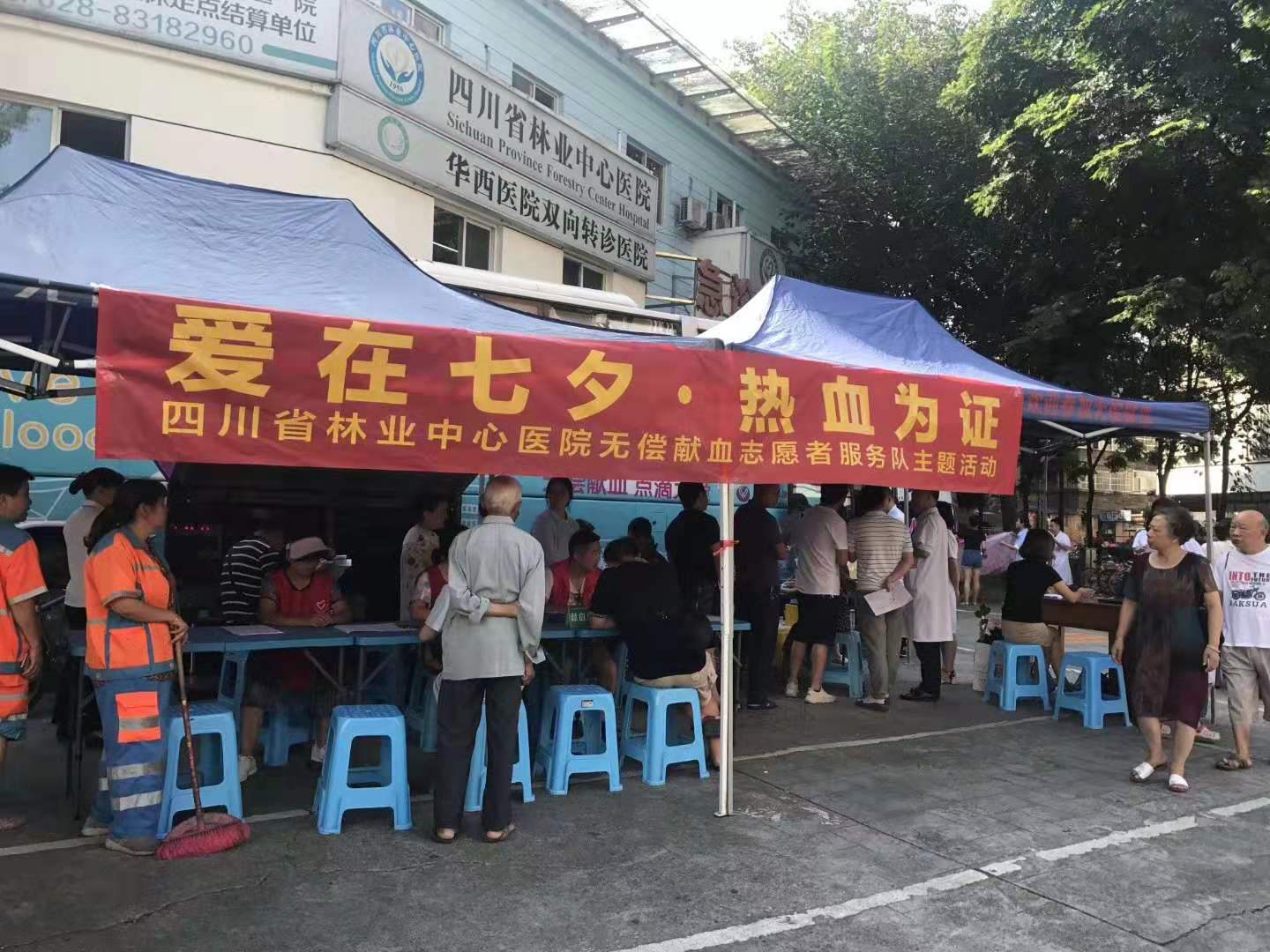 柔情似水,佳期如梦。岁月无声,爱心永恒。8月7日一中国传统节日“七夕节”,我院志愿者服务队联合成都市血液中心,在医院急诊科门口开展了以“爱在七夕, 热血为证”为主题的无偿献血志愿者公益活动。组织医院医务人员及社会志愿者义务献血。特别的日子,奉献特别的爱。